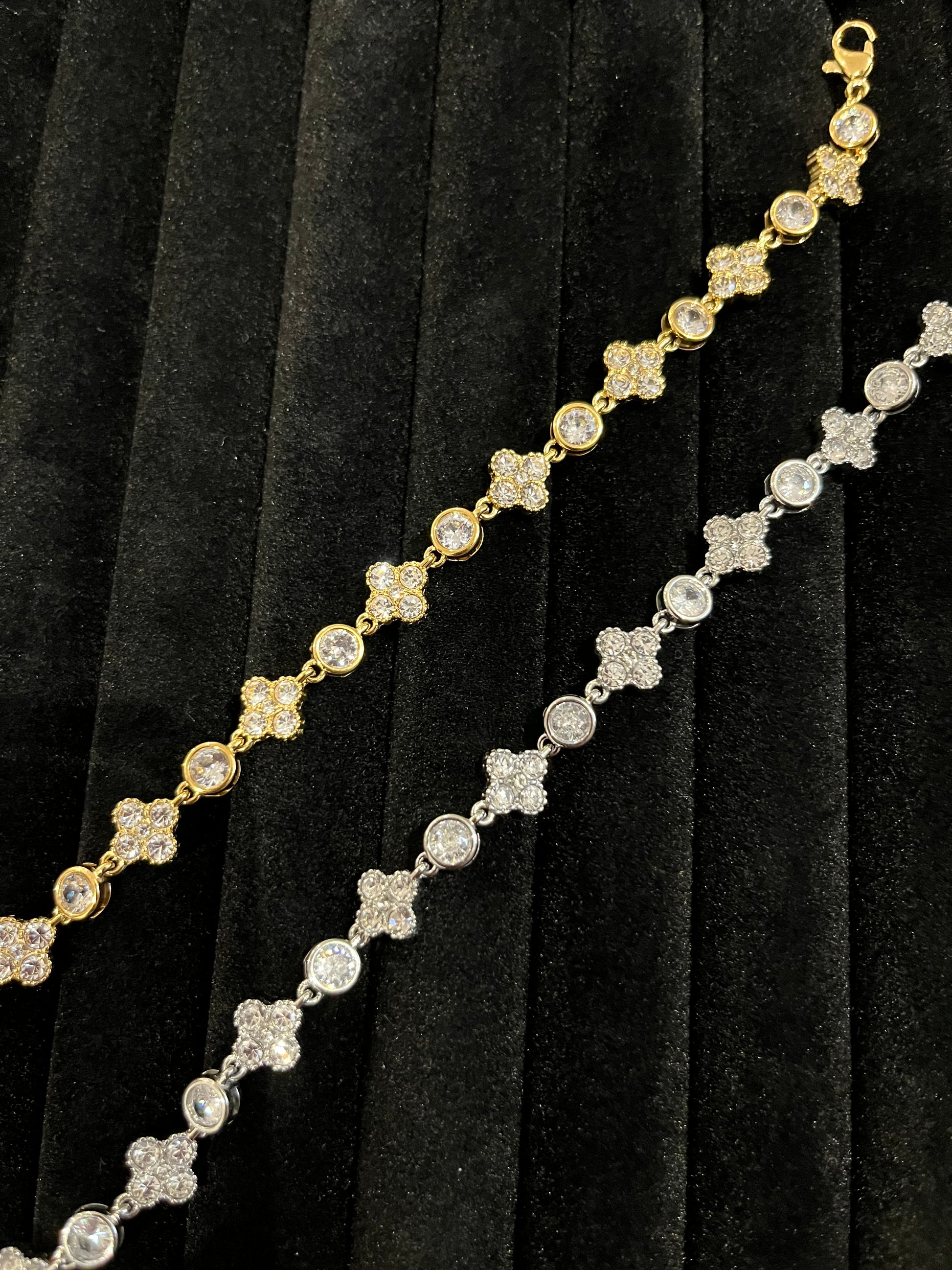 Sparkle with the Bella Stoned Bracelet. This delicate piece features a stunning flower design that adds an elegant touch to any outfit. Handcrafted with precision and care, this bracelet is sure to make a statement and elevate your style. Add it to your jewellery collection and feel confident and beautiful every time you wear it.