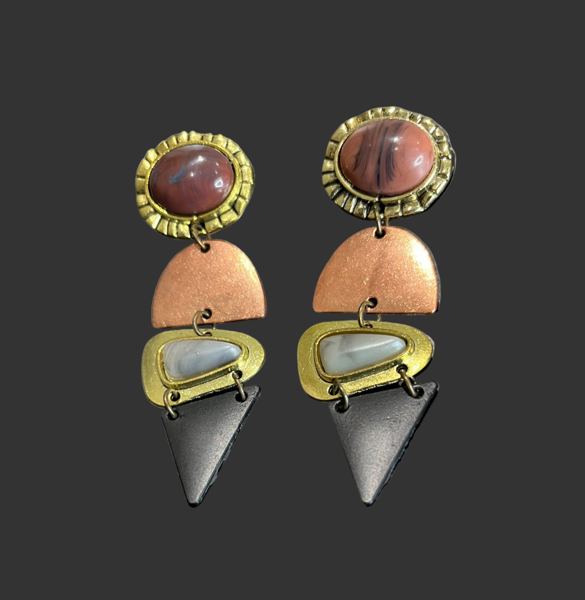 The Braxton Dangle Earrings bring a playful twist with their vintage-inspired bronze finish. These charming earrings sway with every move, adding a fun, nostalgic touch that brightens your style with warmth and personality.