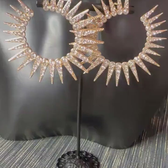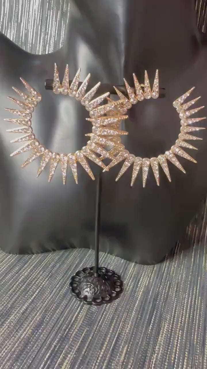 Crystal embellished fan spiked earrings, edgy earrings, statement jewellery
