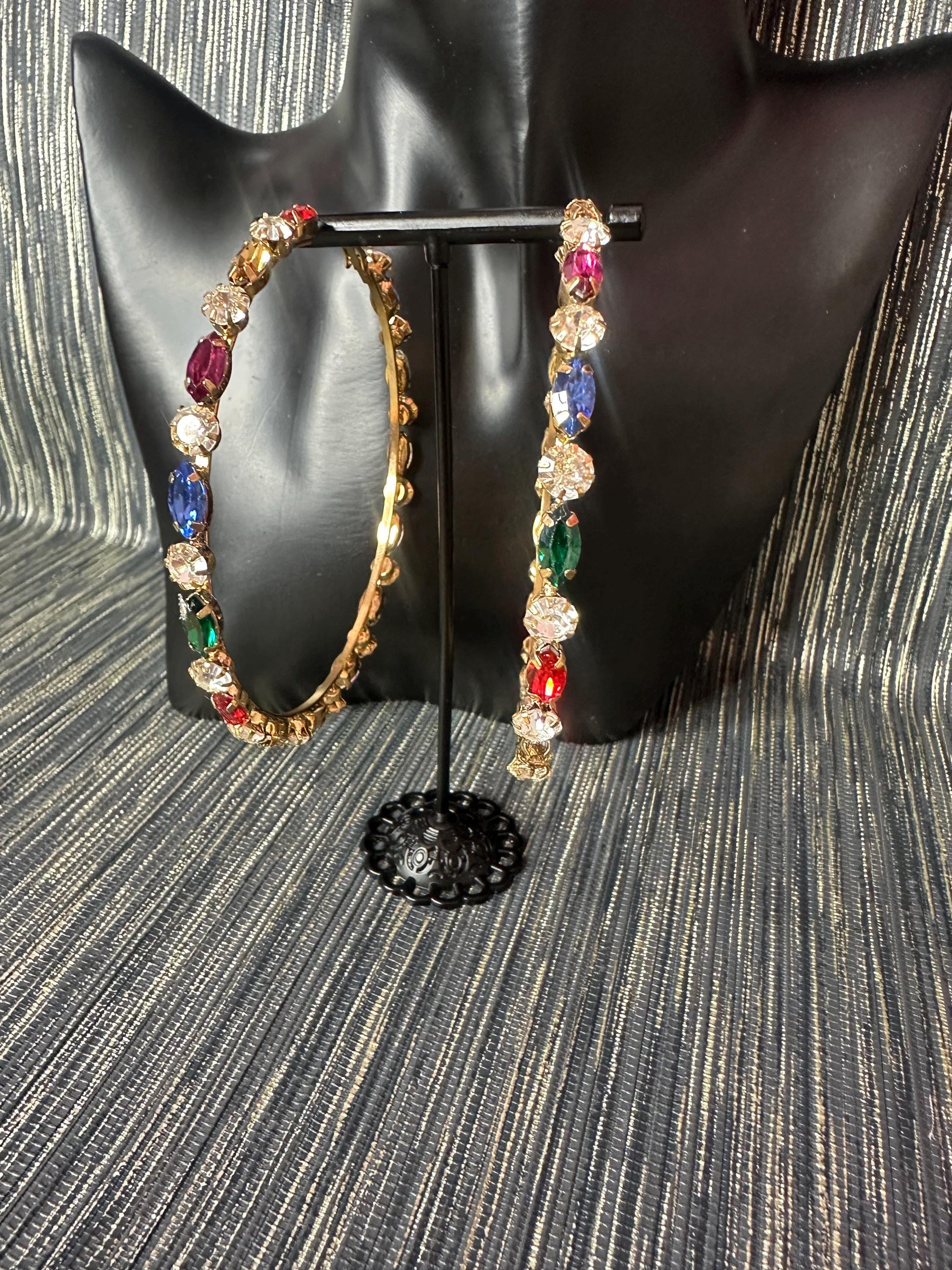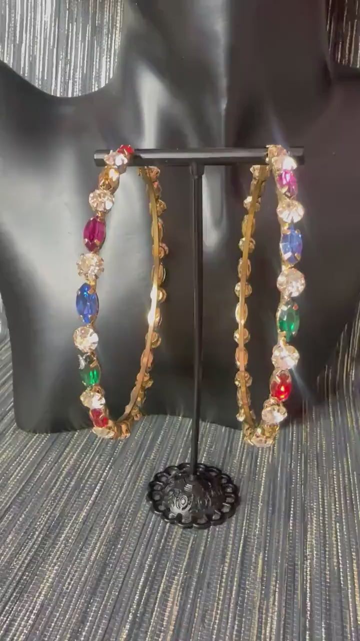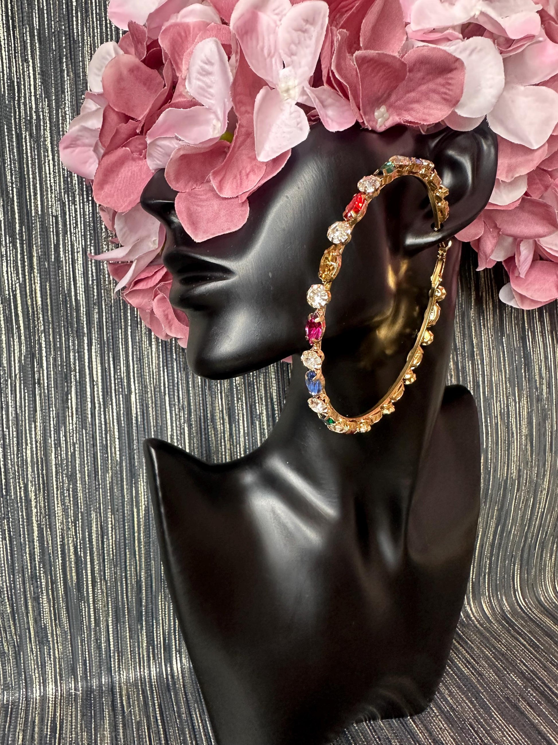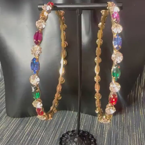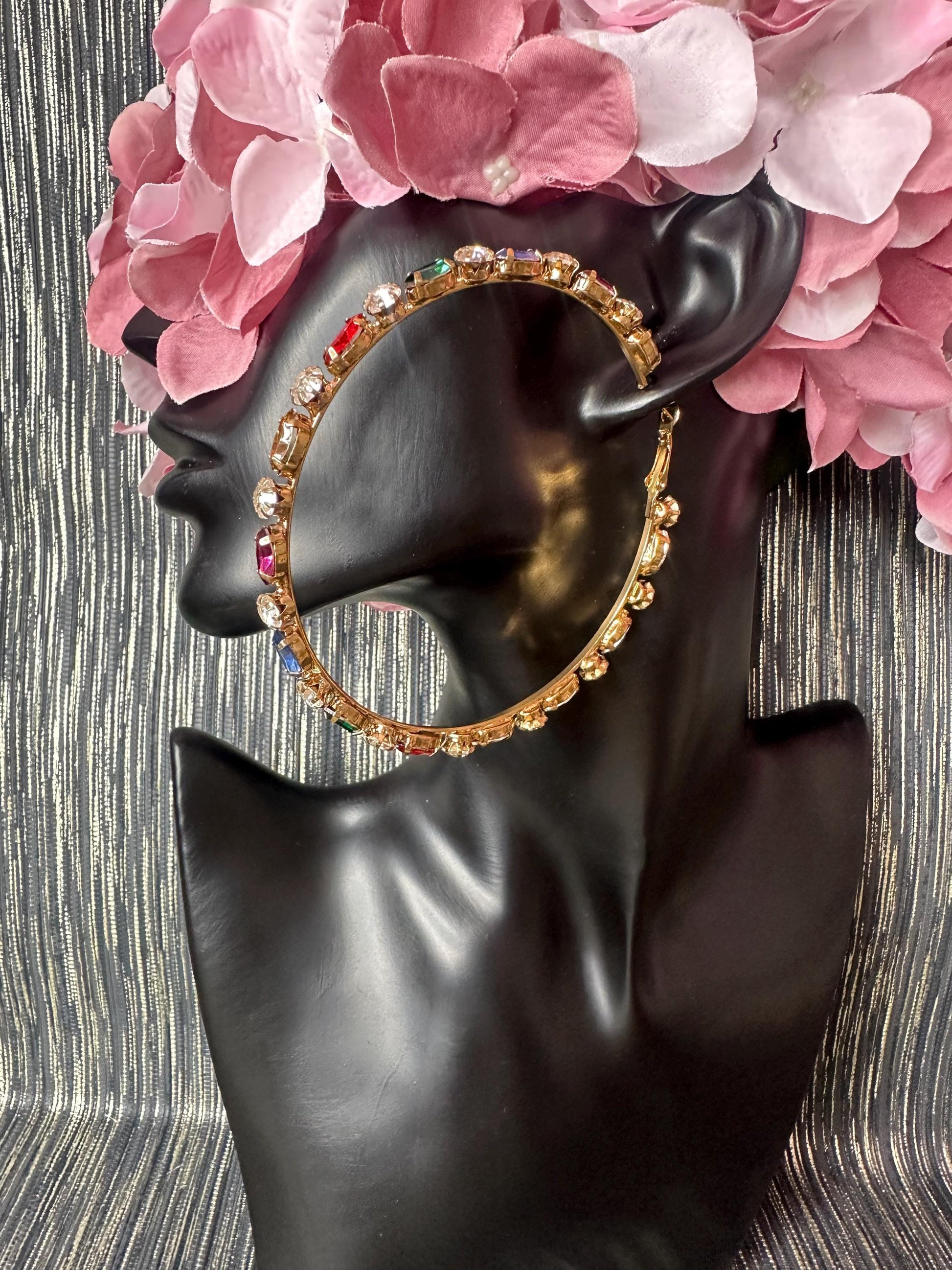 Gold hoop Crystal embellished hoop earrings with alternating multicoloured stones